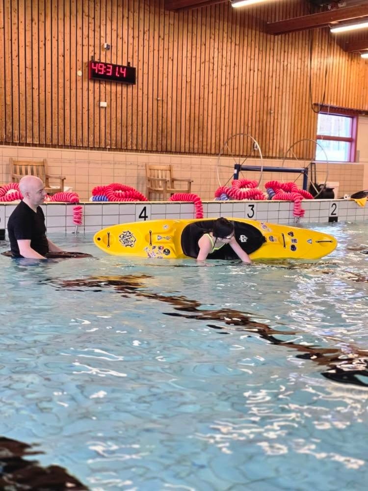 Her tar vi med kajakkene inn i bassenget og øver på rulla, repeterer grunnteknikker og tester ut ulike lekeøvelser. Dette er en trygg og morsom måte å utvikle seg videre på gjennom vinteren, samtidig som man holder kontakten med padlemiljøet.